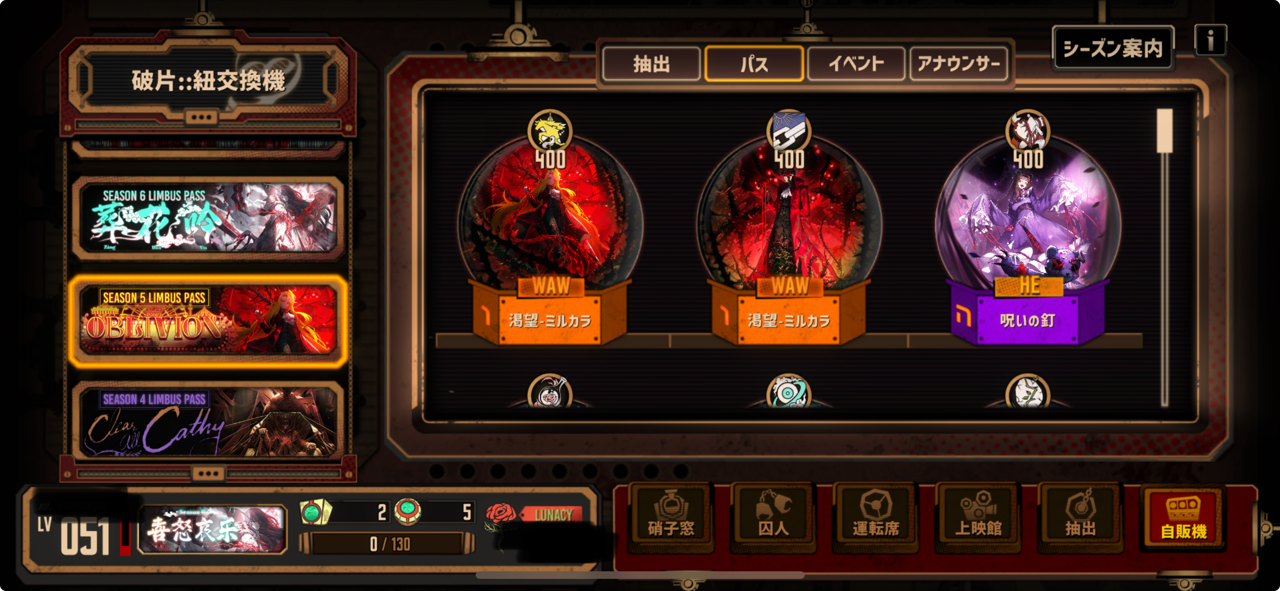 次のシーズンのリンバスパス用の狂気販売はまた行われるはずですので、パス以外で狂気を買わない、という方は事前に用意しなくても問題ないかと思います。
