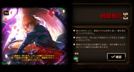 子方の強力なスキルを使われる前に、別の攻撃スキルで先にマッチ勝利する(これは速度(スキルの並び順)に気を付ける)