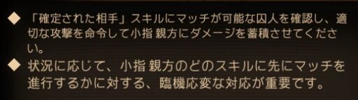 薬指親方のスキルのうち、必ずマッチ勝利すべきスキル(ギミック重要度をチェック!)に集中しましょう!
