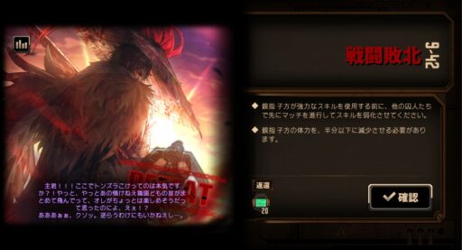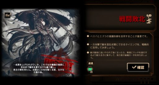 そんな9章の戦闘ステージですが、一部戦闘をギブアップした後の画面にヒントが表示されるようになったことにお気づきでしたでしょうか?