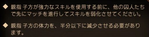 それから子方に同じ囚人で何度もマッチをしないこと(囚人に入っている特殊デバフの数値に注意)