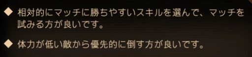 スキルを読んでいくと、「ここに対応すると敵が弱くなるな?」というところがこの戦闘に限らず出てきます。