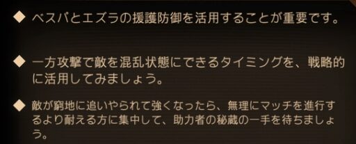 ここでもベスパとエズラの援護防御をどう使うか、活かせると良い感じ(とはいえ言うほど使わなかったような…?🤔)