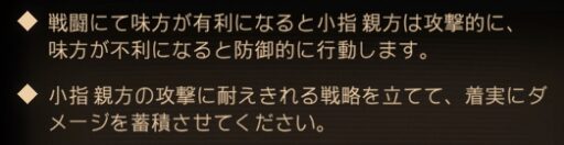 小指親方はこちらが有利になると攻撃的に、こちらが不利になると防御的に行動します。