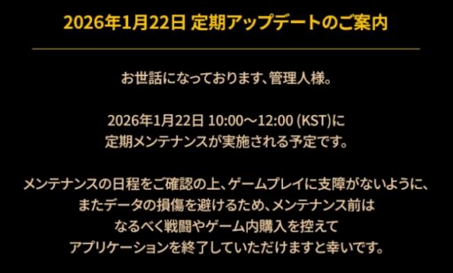 それでは1/22(木)の定期アップデート情報を見ていきましょう!
