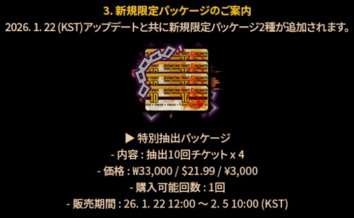 1/22(木)アップデートと共に、新規限定パッケージ2種(有償販売)が追加されます。