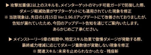 ▶攻撃加重値2以上のスキルを、メインターゲットのマッチ可能ガードで防御した際、ダメージ軽減効果がサブターゲットにも適用されていた現象を修正。