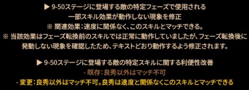▶9-50ステージに登場する敵の特定フェーズで使用される一部スキル効果が動作しない現象を修正。