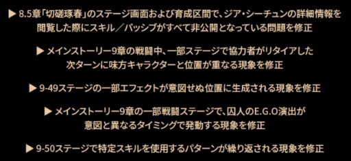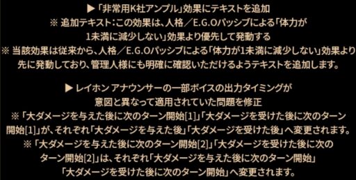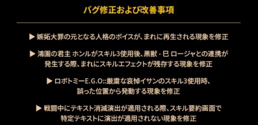 ▶メインストーリー9章の一部戦闘ステージで、囚人のE.G.O演出が意図と異なるタイミングで発動する現象を修正。