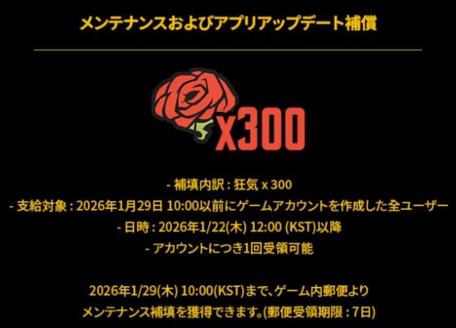 ▶鴻園の君主ホンルがスキル3使用後、黒獣巳ロージャとの連携が発生する際、まれにスキルエフェクトが残存する現象を修正。