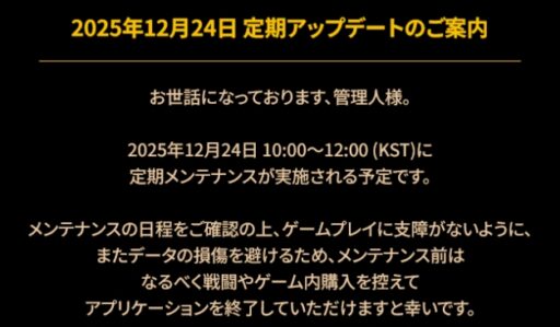 2025年12月24日 定期アップデートのご案内