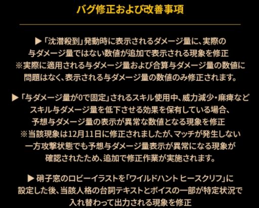 ※実際に適用される与ダメージ量および合算与ダメージ量の数値に問題はなく、表示される与ダメージ量の数値のみ修正されます。