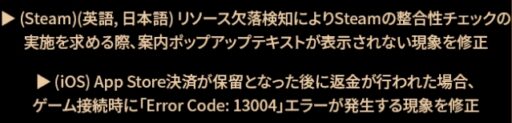 (iOS)App Store決済が保留となった後に返金が行われた場合、ゲーム接続時に「Error Code:13004」エラーが発生する現象を修正。