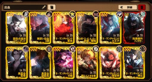 王子ムルソーが来るまでは血鬼+黒雲会+バランサーでスタメンだったんですが、王子ムルソー加入後はほぼ血鬼+αみたいな編成で遊んでいます。