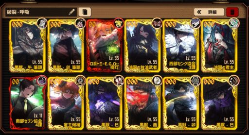 破裂呼吸の強い人格はそっちにいてもらって、呼吸は鏡ハード5層を回るぐらいならこのメンバーで問題ないので変えませんでした。