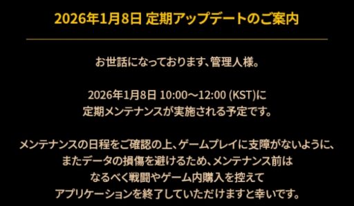 それでは1/8(木)の定期アップデート情報を見ていきましょう!