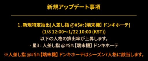 ※人差し指@#$#:【端末機】ドンキホーテはシーズン7人格になります。