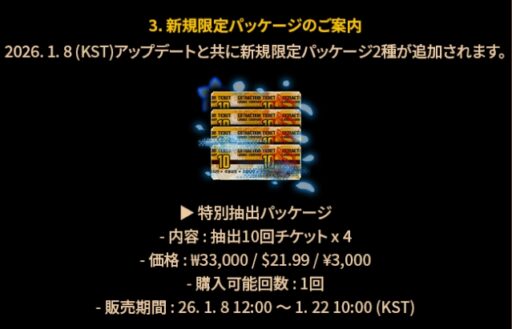 1/8(木)アップデートと共に、新規限定パッケージ2種(有償販売)が追加されます。