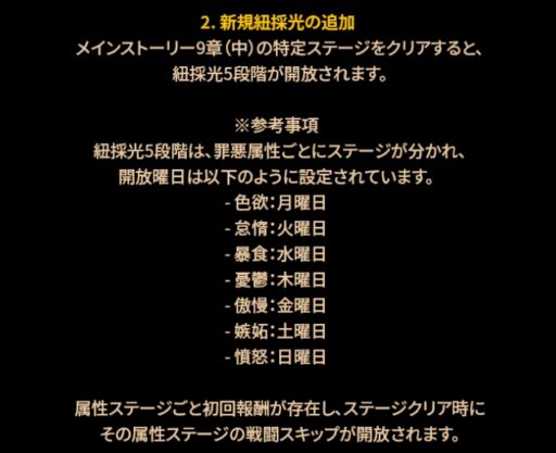 メインストーリー(中)の特定ステージをクリアすると、紐採光の5段階目が開放されます。