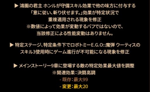 ▶鴻園の君主ホンルが守備スキルで他の味方に付与する「意に従い、斬り伏せます」効果が特定状況で重複適用される現象を修正。
