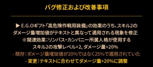 ▶E.G.Oギフト「高危険作戦用装備」の効果のうち、スキル2のダメージ量増加値がテキストと異なって適用される現象を修正。