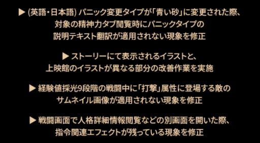 ▶メインストーリー9章の特定ステージにて、敵の部位が摘出されてもSDリソースが更新されない現象を修正。