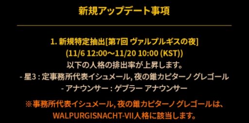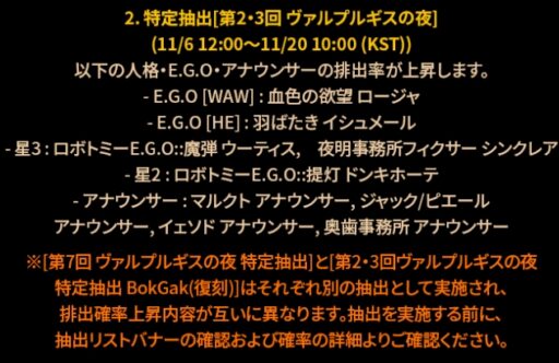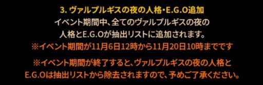 イベント期間中、全てのヴァルプルギスの人格とE.G.Oが抽出リストに追加されます。