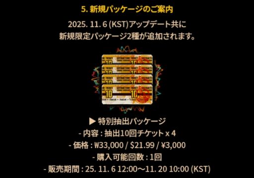 11/6(木)アップデートと共に、新規限定パッケージ2種(有償販売)が追加されます。