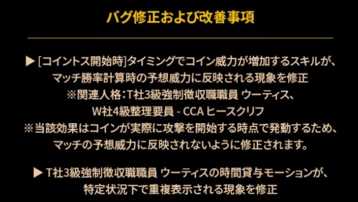 ▶[コイントス開始時]タイミングでコイン威力が増加するスキルが、マッチ勝率計算時の予想威力に反映される現象を修正。
