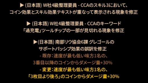 ▶(日本語)W社4級整理要因 – CCA ヒースクリフのスキル3において、コイン効果とスキル効果テキストが重なって表示される現象を修正。