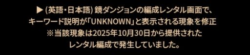 ▶(英語・日本語)鏡ダンジョンの編成レンタル画面で、キーワード説明が「UNKNOWN」と表示される現象を修正。