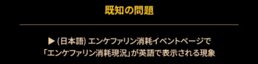 こちらは既知の問題となっており、アップデート後から修正まで、「ヴァルプルギスの夜のエンケファリンイベントページが、一部英語で表示される」という現象が起こるようです。