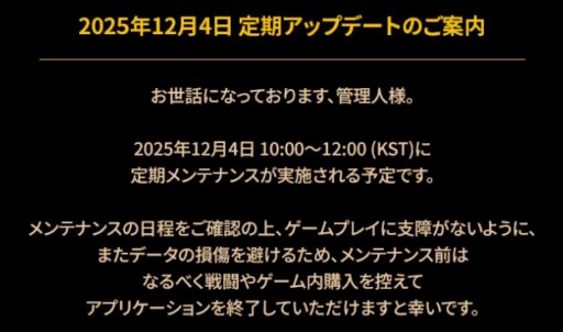 以上が12/4(木)実施予定の定期アップデートの内容となります。