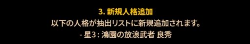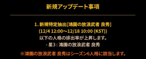 今週はさすがにシーズン人格最後の実装になりそうな良秀の新規人格がやってきます!