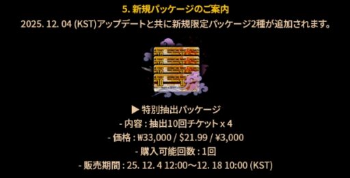 12/4(木)アップデートと共に、新規限定パッケージ2種(有償販売)が追加されます。