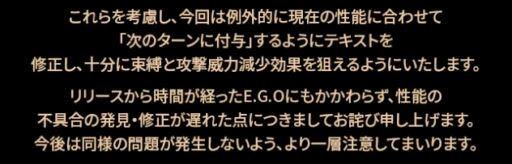 お詫び文でリリースから時間が経った~とありますが、初期も初期のE.G.Oなのに誰も気づかず、いや気づいてもそっちのが有利だから指摘されなかったまでありそうですね。