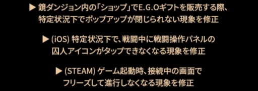 ▶鏡ダンジョン内の「ショップ」でE.G.Oギフトを販売する際、特定状況下でポップアップが閉じられない現象を修正。