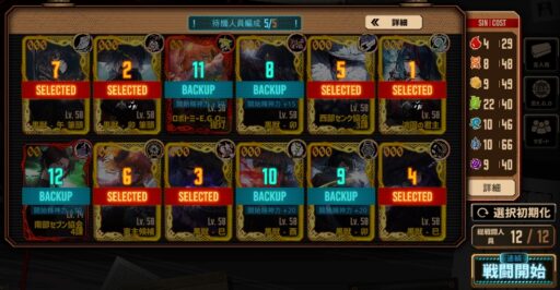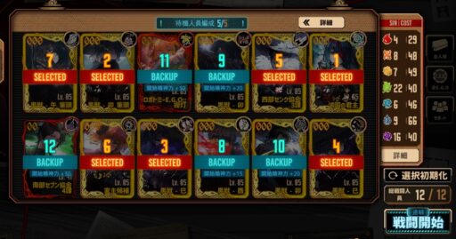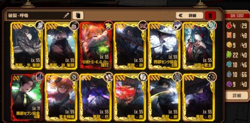 黒獣・H社で揃えていれば4人目まで破裂呼吸は問題ないですし、センクムルソーがいない場合の呼吸カバー1枠は終止符ヒースクリフ辺りを入れると破裂呼吸で進みやすそう。