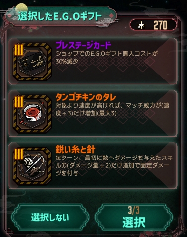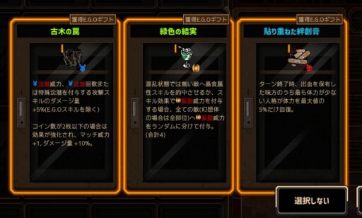 ムルソーは回避を試して勝てるケースも結構ありますが、他はE.G.Oでいなしていきます。