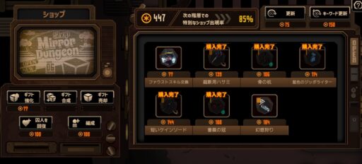 あと意図的に「15層でこれだけ持ってたぞ~」という感じで、本来なら最終階層なら売ったり合成していいギフトも残しているっぽいです。多分。