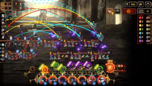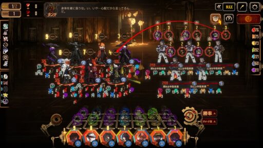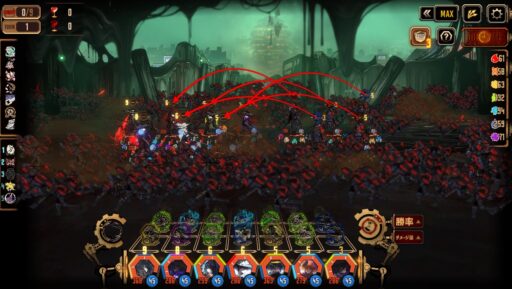 君主ホンル編成1番に置き、強化するだけしておいて、オーバークロック汚血泣涙に「鋭い針と糸」の効果を乗せてドーン!ってしますと、終盤の方でもかなりの敵の体力を吹っ飛ばせます。