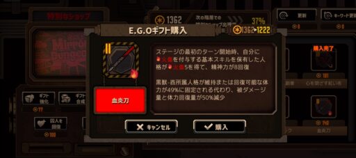 なお隠しボスを倒すとそれぞれ強いE.G.Oギフトがもらえて、むしろそれあったら強いみたいなケースもあるので、11~13階層ぐらいでの乱入なら戦っても良い…良いかな…?
