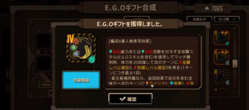 専用のE.G.Oギフトもあり強くはあるんですが、2属性持ちと並べると最終盤ではマッチ力などの面でパワー負けしがち。