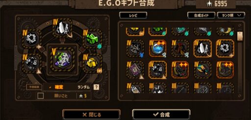 今回のプレイ日記ではこちらのE.G.Oを使ってマッチ力の方を重視しましたが、いい感じにマッチ勝ってくれて、なおかつ威力もほどほどに出してくれるので良い感触でした。
