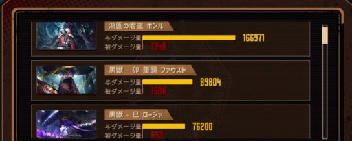 君主ホンルのダメージは2番手の黒獣ファウストの倍…恐ろしや君主…!