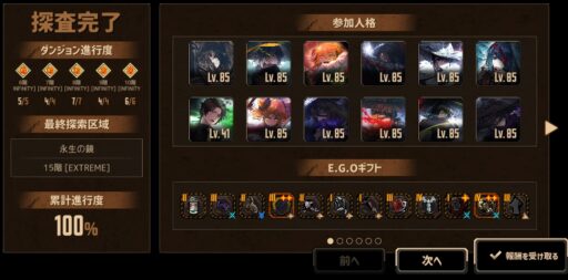 シーズン6のパスE.G.O「紅籍」がなかなかやる子だったので(前より評価上がりました)上手く使ってあげれば…いや流石に15層まではそうとう上手くやらないと無理かな…_(:3 」∠)_