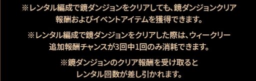 ※レンタル編成で鏡ダンジョンをクリアしても、鏡ダンジョンクリア報酬およびイベントアイテムを獲得できます。