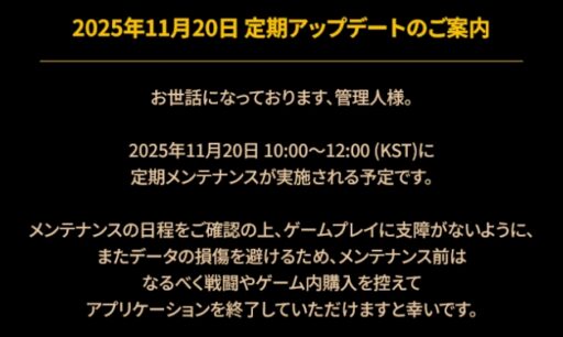 11/20のメンテは黒獣追加、鉄道復刻、コラボE.G.Oの修正などきちんと把握しようとすると結構大変ですね💦