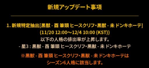 それでは11/20(木)の定期アップデートの内容を見ていきましょう!