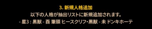 新規人格:星3 黒獣 – 酉 筆頭ヒースクリフ:黒獣 – 未 ドンキホーテ